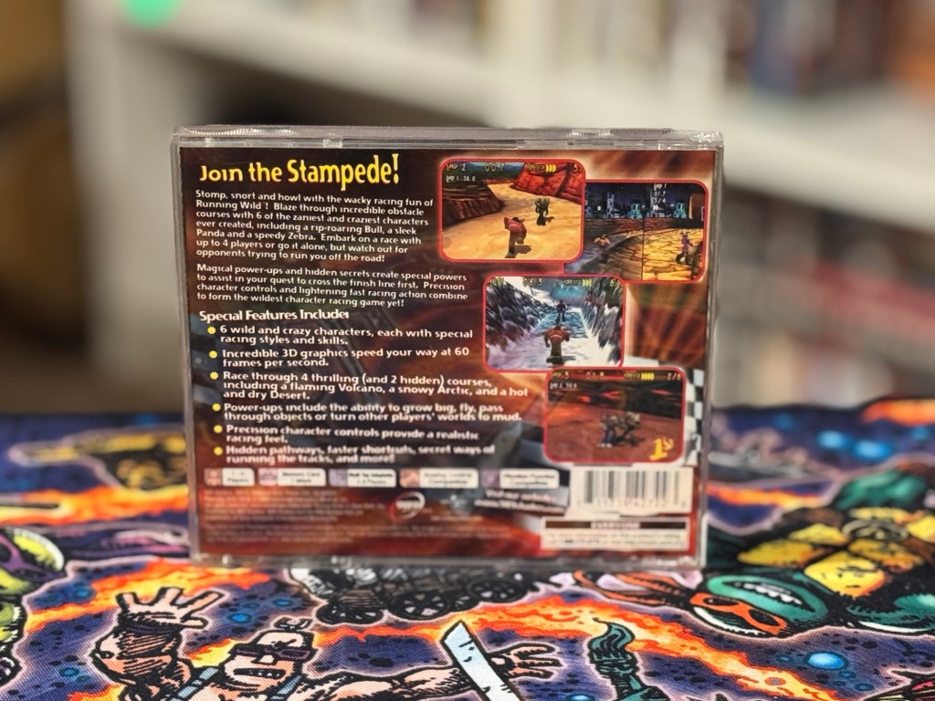 From Steel Collectibles came a copy of Running Wild for the original PlayStation, which was ordered as an upgrade for what I had in my library. The game is now fully complete, including a sheet of memory card stickers that I had been saving. What is Running Wild? Well… it’s an animal racing game. Sony slapped the Crash Bandicoot logo on the cover, but the small print says “From the producers of…”– which isn’t Naughty Dog. The producer is Universal Interactive, and the development team is Blue Shift… so the relationship to Crash is very loose. It’s an okay game that seems to have kid appeal with its anthropomorphic characters.