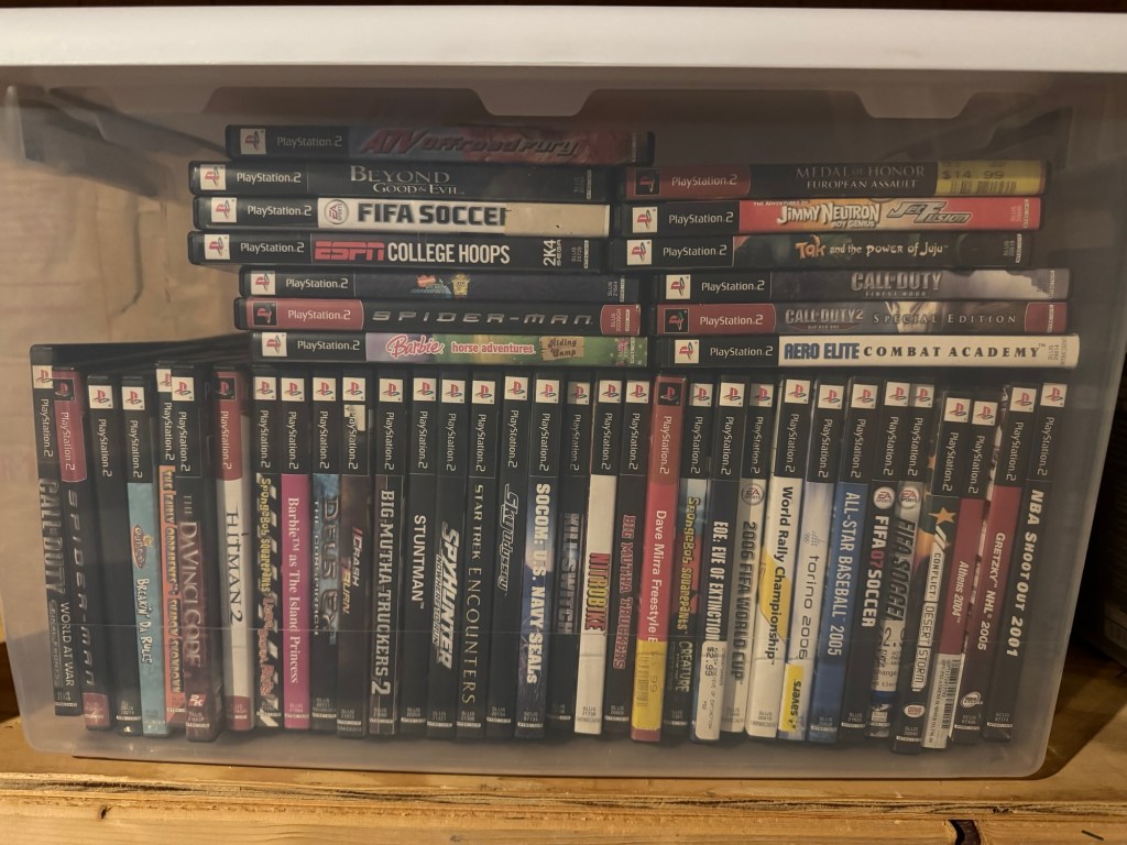 Finally, securing and assembling another shelving unit is a priority in 2026. I’m literally out of space for shelving games, so things got a bit disorganized late this year. I’d like to shelve the loose N64 games I currently have in small storage bins and clear out that space for some overflow original PlayStation games. I’d also have room to shelve some PlayStation 2 games that are in storage. It won’t be all four huge tubs, but it’ll make a dent.
